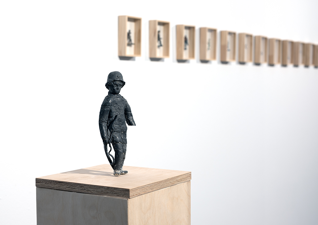 Wystawa Szymona Kobylarza stanowi wnikliwą krytykę społeczeństwa, które – znieczulone nadmiarem obrazów przemocy – w sposób niemal niezauważalny internalizuje obecność wojny jako stałego elementu codzienności. W obliczu nieustających konfliktów zbrojnych na świecie, ich narracje, estetyki i logiki przenikają wszystkie warstwy życia społecznego – także tę najbardziej podatną i kształtującą: dzieciństwo.