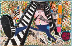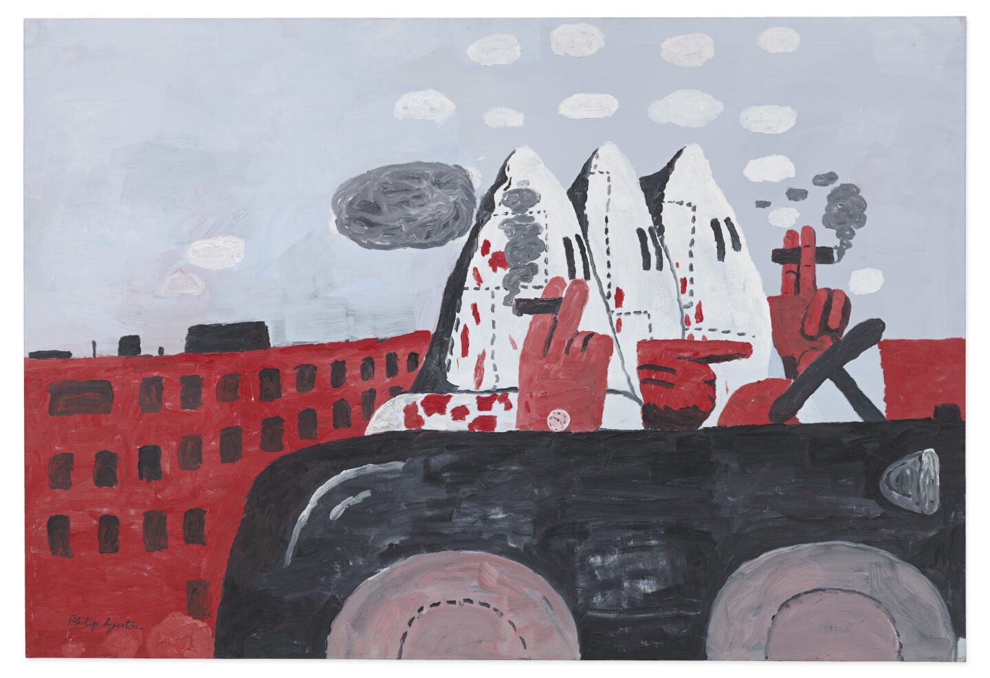 Pierwsza z nich to Draw Them In, Paint Them Out: Trenton Doyle Hancock Confronts Philip Guston (8.11.2024–30.03.2025; kuratorka: Rebecca Shaykin), która zestawiała klasyczne już malarstwo Philipa Gustona (1913–1980) z Trentonem Doyle’m Hancockiem, artystą z Teksasu (ur. 1974) używającego zupełnie innego języka wizualnego, ale równie silnie co Guston osadzonego w kwestiach rasy i władzy. Hancock dał muzeum dobry powód do zorganizowania wystawy wprowadzając do swoich płócien charakterystyczną postać z obrazów Gustona: zakapturzonego członka Ku Klux Klanu, który ściera się tu – niczym w komiksach – z czarnym bohaterem o imieniu Torpedoboy. Innymi słowy, w tych kompozycjach haniebne alter ego Gustona walczy z odważnym, choć równie karykaturalnym, alter ego Hancocka. Walka obu artystów w ujęciu teksańskiego malarza jest pokłosiem zarówno typowych pojedynków raperów, jak i napięć wciąż obecnych w sztuce i społeczeństwie amerykańskim. A pomysł, by ten pojedynek uzewnętrznić – okazał się rewelacyjny.
