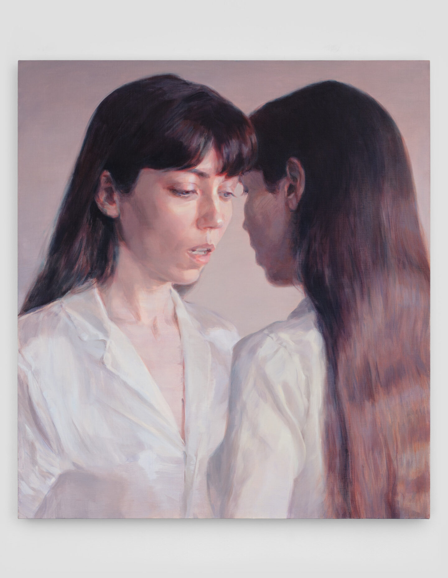 Ksenia Gryckiewicz zadaje sobie i nam pytanie czy głos należy tylko do nas? Czy oddzielając się od niego, jesteśmy w stanie zachować nad nim kontrolę? W swoich obrazach figuralnych tworzy autokreację postaci wytwarząjącej dźwięki, używającej głosu, generującej siłę i odwagę – osiąga to poprzez terapeutyczną pracę własną, a także poczuciu przynależności do grupy. Część obrazów artystki jest przesiąknięta dźwiękiem – widzimy go w ułożeniu ust, dłoni, napięciu ciała czy krtani. Jednak, w niektórych obrazach artystka mierzy się z głuszą, przedstawienia są bezdźwięczne, prawie nieme.