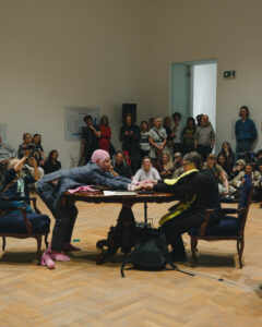 Dominacja środowiska choreograficznego na scenie wywołuje niezadowolenie starszej i średniej generacji performerskiej, mierzącej się jeśli nie z utratą władzy sądzenia, to przynajmniej kapitału fajności. Chyba w tym świetle można widzieć narzekanie Wojciecha Bąkowskiego na „queerowe jasełka” w galeriach. WSB pił do performansu Alexego Baczyńskiego-Jenkinsa w Fundacji Galerii Foksal, ale jego stwierdzenie dobrze chwyta aktualną kondycję performansu w Polsce (choć już nie sztuki jako takiej). Performans w 2025 roku był bowiem przede wszystkim queerowy. Ta zmiana to także efekt zbliżenia performansu i tańca, z jego głębokim zrozumieniem ciała, jego tożsamości i społecznego funkcjonowania. Wiąże się to również ze zmianą pokoleniową. Młodsza generacja odrobiła już lekcję nie tylko z choreografowania siebie, ale także różnorodnych scenicznych formatów – burleski, drag show, cyrku, a nawet teatru lalkowego i tańca na lodzie. Czy performans, jako mniej lub bardziej autonomiczna dziedzina, przetrwa ekspansję choreo, czy też roztopi się w nim pod dachem Pawilonu Tańca? Zobaczymy. Na razie ma się nieźle, choć żeby to dostrzec, trzeba się trochę wysilić, bo funkcjonuje w instytucjonalnym i geograficznym rozproszeniu. Powiedzmy, że jego oglądanie przypomina zbieranie pokemonów, tylko zamiast aplikacji potrzebujcie biletów PKP. Najciekawsze znaleziska – poniżej. Na pewno nie złapałam wszystkich.