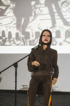 Lala Katarzyny Kozyry budziła największe emocje w 2024 roku, kiedy zastąpiła artystkę na wystawie Łzy szczęścia w Zachęcie, ale mnie udało się załapać na jeszcze jeden występ mechanicznej Kasi – w styczniu na uniwersytecie SWPS wygłosiła ona wykład Początek i koniec. Wykład lali odbył się po dyskusji Kozyry z Andą Rottenberg i był poświęcony historii performansu, zakończonej diagnozą współczesnego stanu gatunku, który według lali idzie w stronę nowych technologii i wyzwolenia od fizycznego ciała osoby performującej. Jest to opinia przewidywalna, ale może chodziło po prostu o autoreklamę. Jeśli jednak boicie się, że w performansie ludzi faktycznie zastąpią boty, uspokajam – jesteśmy w Polsce, tu na technologię nikt nie ma pieniędzy. Stare dobre ciało raczej będzie jeszcze w użytku. Ciągle jest tańsze.