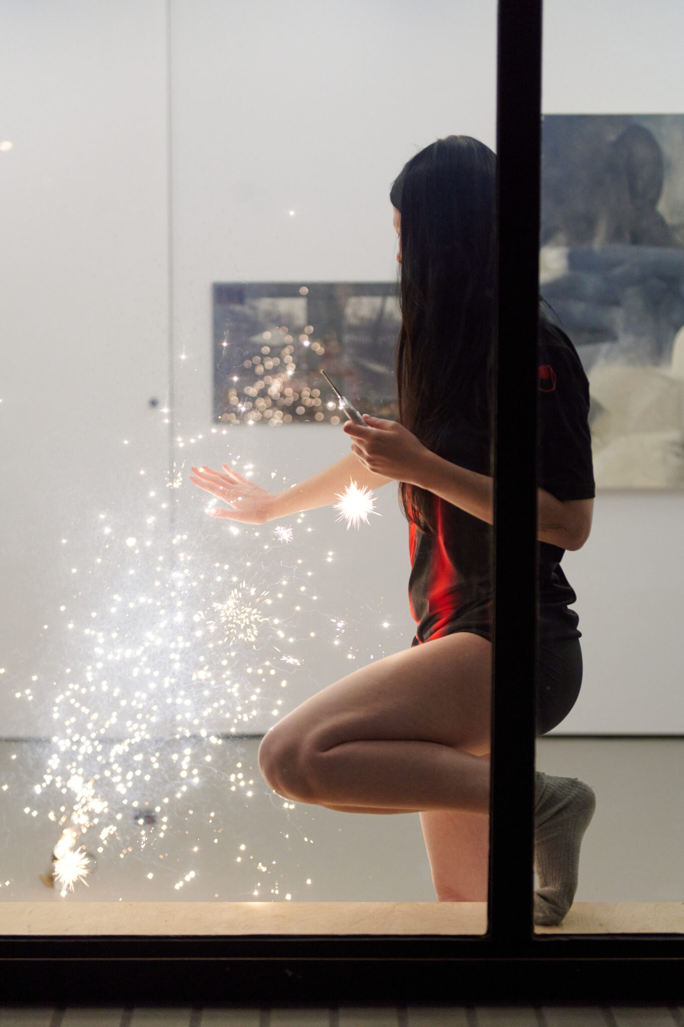 Jeśli szukać dowodów na wpływ tańca na język performansu, dostarcza ich być może praktyka Emmy Szumlas. Szumlas jest po studiach licencjackich na Wydziale Sztuki Mediów Akademii Sztuk Pięknych w Warszawie, ale performuje tak, jakby urwała się z jakieś szkoły tańca w Amsterdamie lub Londynie – w jej pracach bardziej od narracji liczy się ruch i praca (posthumanistycznego) ciała. W tym roku artystka występowała w m.in. MSN-ie i podczas targów Nada Villa Warsaw, mi zaś udało się obejrzeć jej performans Egg. Devoid o Any Spectacle, zorganizowany w galerii TBA w październiku. Szumlas wystawiła się nim na obserwację – performowała w niewielkiej przestrzeni galerii, a publiczność mogła oglądać ją przez witrynę, co przywodziło trochę na myśl obserwację zwierzęcia lub wodnego demona, zamkniętego w białym terrarium. Performans zapowiadany był jako „ograniczający ruch do minimum”, ale minimalizm to chyba nie jest estetyka Szumlas, której ciało ekspresyjnie wyginało się w witrynie, a przekrwione oczy opętańczo łypały na widownię. Na koniec artystka odpaliła w galerii fajerwerki – ponoć bezpieczne, ale co by nie mówić – nieźle szołmeńskie.