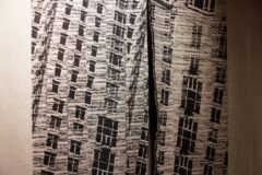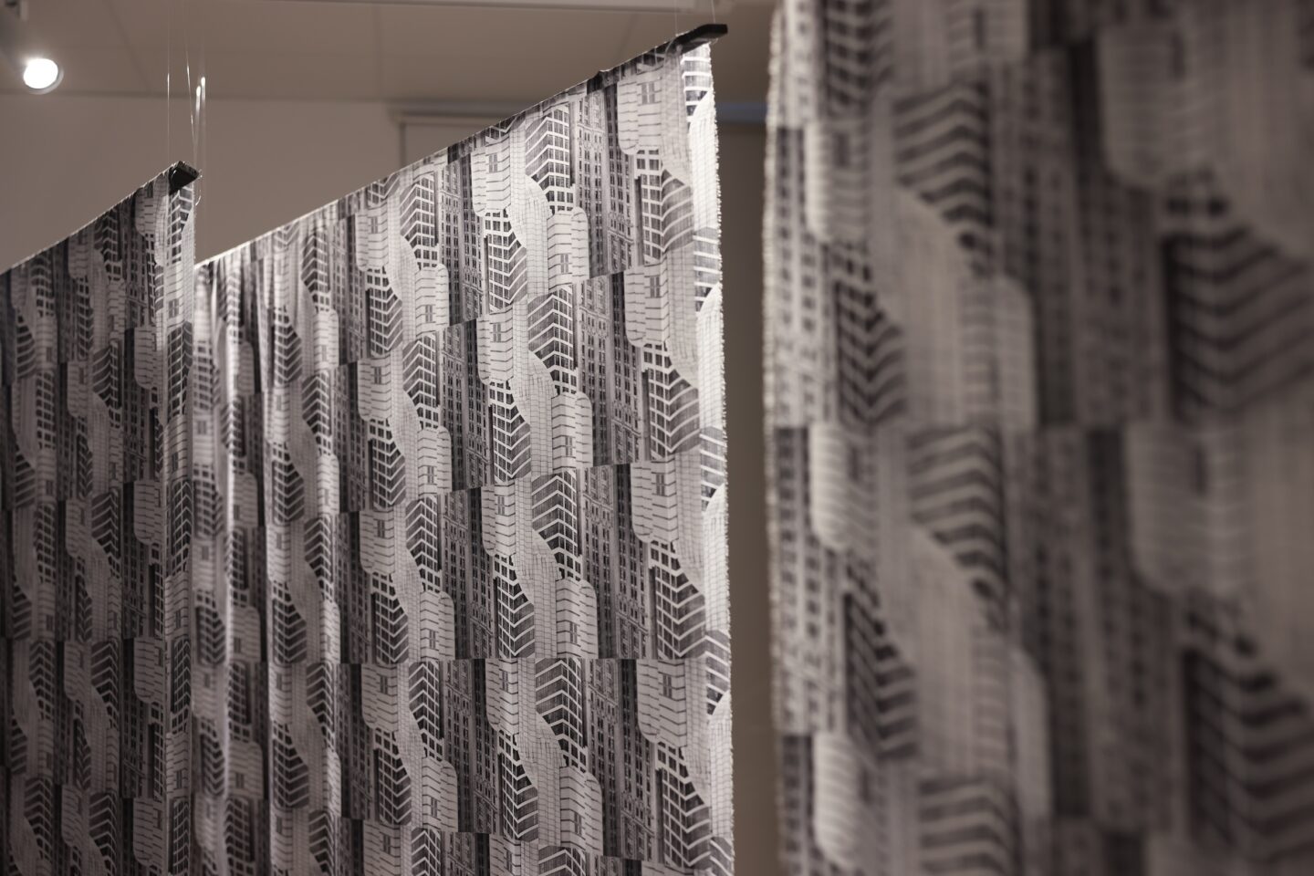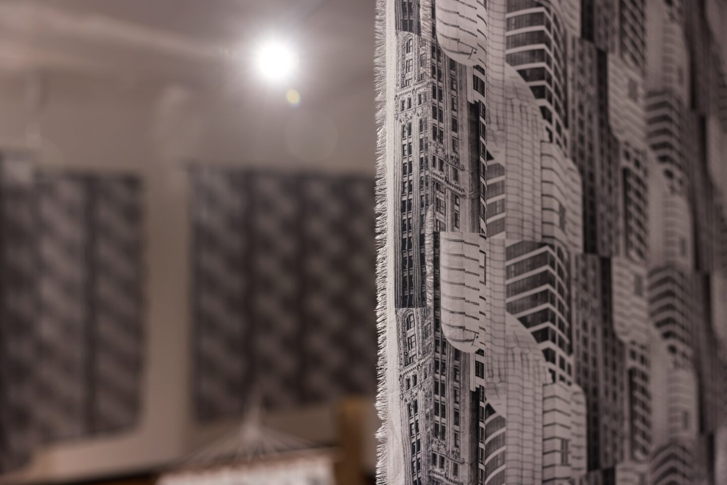 To osobliwe zjawisko rytmu, zauważane poprzez słuch zewnętrzny, którym człowiek słyszy dźwięki, i słuch wewnętrzny, którym człowiek rozumie harmonię. Oba zostały opisane przez Arystotelesa w Zmysłach i ich przedmiotach jako nauka, modułowość ciała, umiejętność konstrukcji, układu przestrzennego impaktu. Monumentalne premierowe kompozycje Izabeli Jurczyk – artystki wizualnej, projektantki grafiki i tkanin są kontynuacją cyklu Living in Lines. Zaprojektowane materiały układają się w linie rytmów, odtwarzają porządek miejsc, fałdujące rusztowania, wyciszone livingroomy i upajające zakorkowane deptaki. Szablony tkanin przenika rytmiczny dźwięk, monochromatyczny, wielokrotny, szum powielający wnętrze galerii. Podobnie jak wzór, ślad, ale jakoś intensywniej w czasie, kształtuje finalnie graficzny znak, chwyta jeden z miejskich rozpoznawalnych urbanistycznych motywów i w dowolnej liczbie powtarza jego wymiary, harmonię, nadaje indywidualny puls, ale czy jest znikąd…?