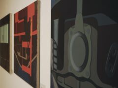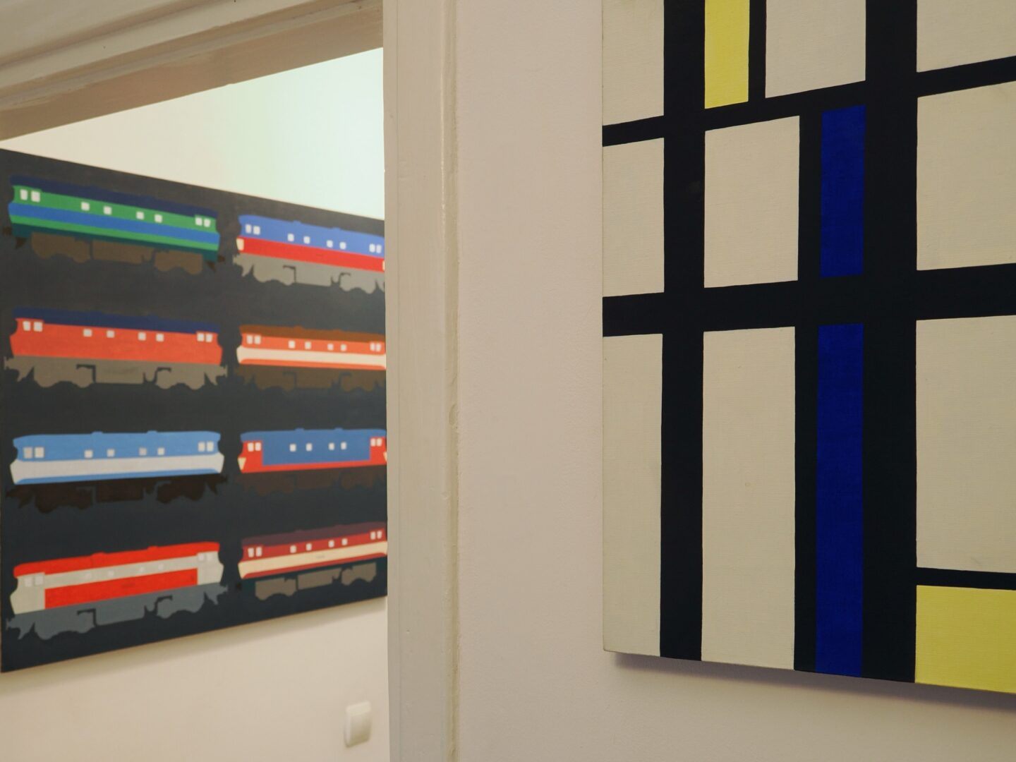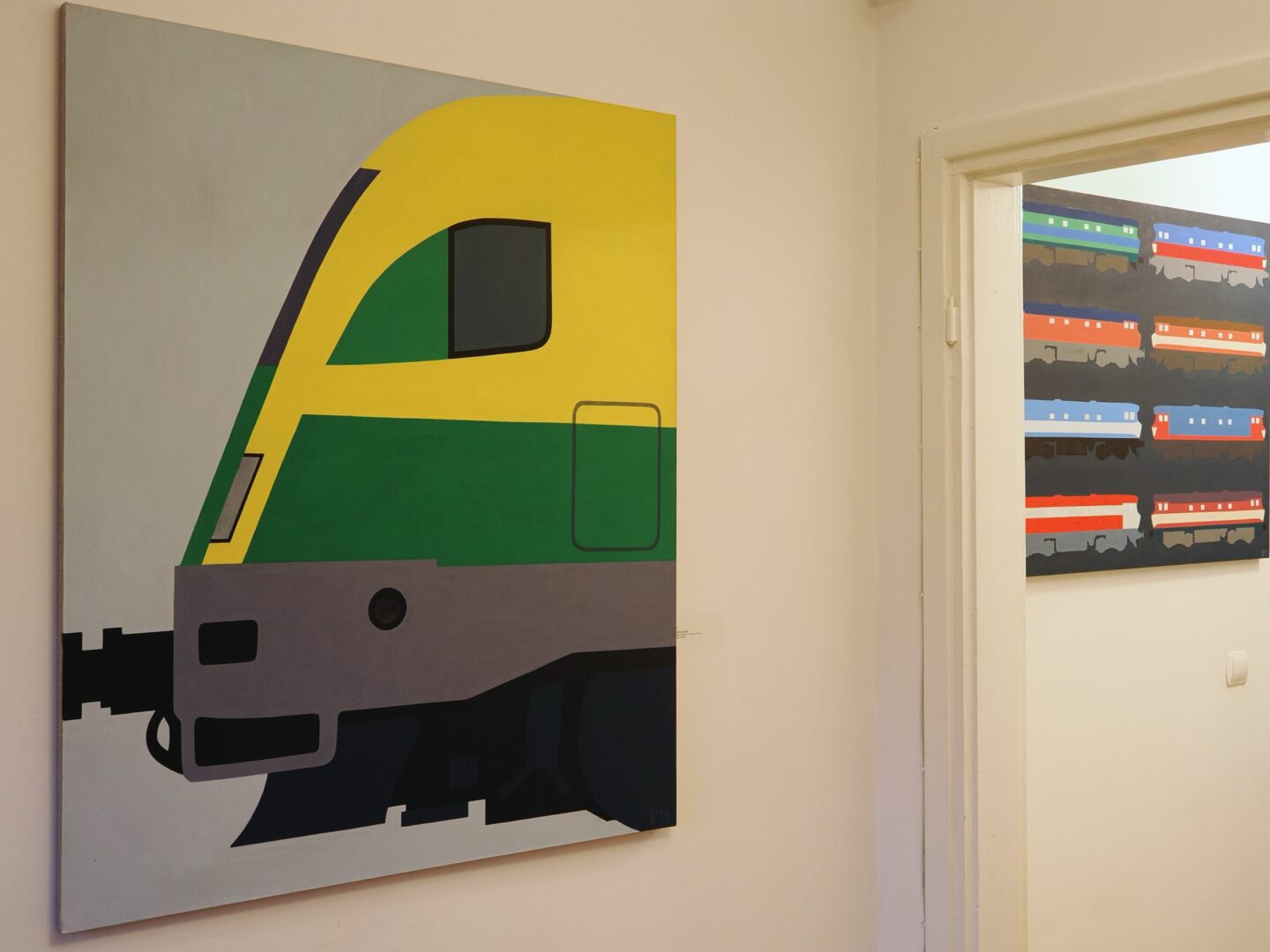 Obrazy Igora Przybylskiego (ur. 1974) nieustannie łudzą oko. Kiedy oglądam je w jego pracowni, często nie potrafię powiedzieć, co przedstawiają. Silnie czerpiąca z języka geometrii błękitno-biało-żółta, konotująca skojarzenia z kolorystyką wybieraną przez europejskich awangardzistów praca 201e-955 (2007) z cyklu Prywaciarze, zainspirowanego prywatnym lokomotywami z Polski, w istocie ukazuje fragment boku jednej z nich, na którym załamało się światło. Bliski abstrakcji jest obraz SM42-2177RP (2007), sprowadzony do gry żółtych, czerwonych i brązowych płaszczyzn oraz płynnych form linearnych, jak również inne prace z tego cyklu, na których elementy pociągów zostały upodobnione do nieforemnych wieloboków, fragmentów różnych znaków bądź liter oraz ukośnych, biegnących pod różnymi kątami linii przecinających płaszczyzny malarskie. Choć w grze szarych i błękitnych rombów z płótna Havirov 2 (2015) dostrzeżemy strukturę kryształu, artysta odrealnił w nim detal architektury czeskiego dworca. Równie zagadkowy jest obraz DB 182-016 ujawniający fragment pociągu, a także inne prace 1047-006 i 1047-502 z projektu Höchstgeschwindigkeit (2014) pokazanego w Galerii Andel’s w Berlinie. Znalazły się na nich malowane w różnych wariantach kolorystycznych, maksymalnie uproszczone, oglądane z boku kabiny lokomotyw, kojarzące się też nieco z… tajemniczymi zwierzętami nieznanego gatunku.