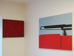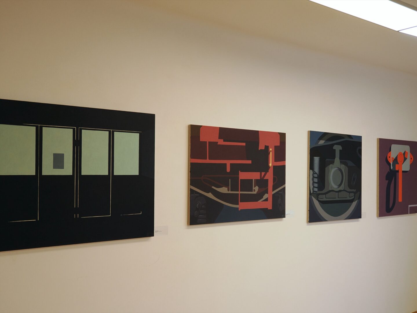 Właśnie to stymulowanie wyobraźni, budzenie skojarzeń oraz odkrywanie tajemniczych związków łączących ukazane formy stały się przedmiotem wystawy Niebezpieczne połączenie / Dangerous connection w Galerii aTAK, na której malarz pokazał kilkanaście obrazów z lat 2006–2025. Choć z pozoru wyglądają na abstrakcyjne, mieszczą się w spektrum malarstwa przedstawiającego. Jak powiedział Przybylski, namalował je „z natury techniki”11 Wszystkie cytaty pochodzą z rozmowy autorki z Igorem Przybylskim, przeprowadzonej 15 grudnia 2025 roku w Warszawie. ↩︎, ukazując fragmenty konkretnych budowli czy maszyn. Interesował się nimi już wtedy, gdy realizował choćby projekt Československa moderna, w którym odtwarzał poddane geometryzacji fragmenty stacji kolejowych, ale również malując cykl Autosan czy najnowszy Container Love, w którym z różnych kadrów fotografii wykonanych podczas przejazdu pociągów kontenerowych wybrał interesujące go szczegóły i zbudował z nich kompozycje obrazów.