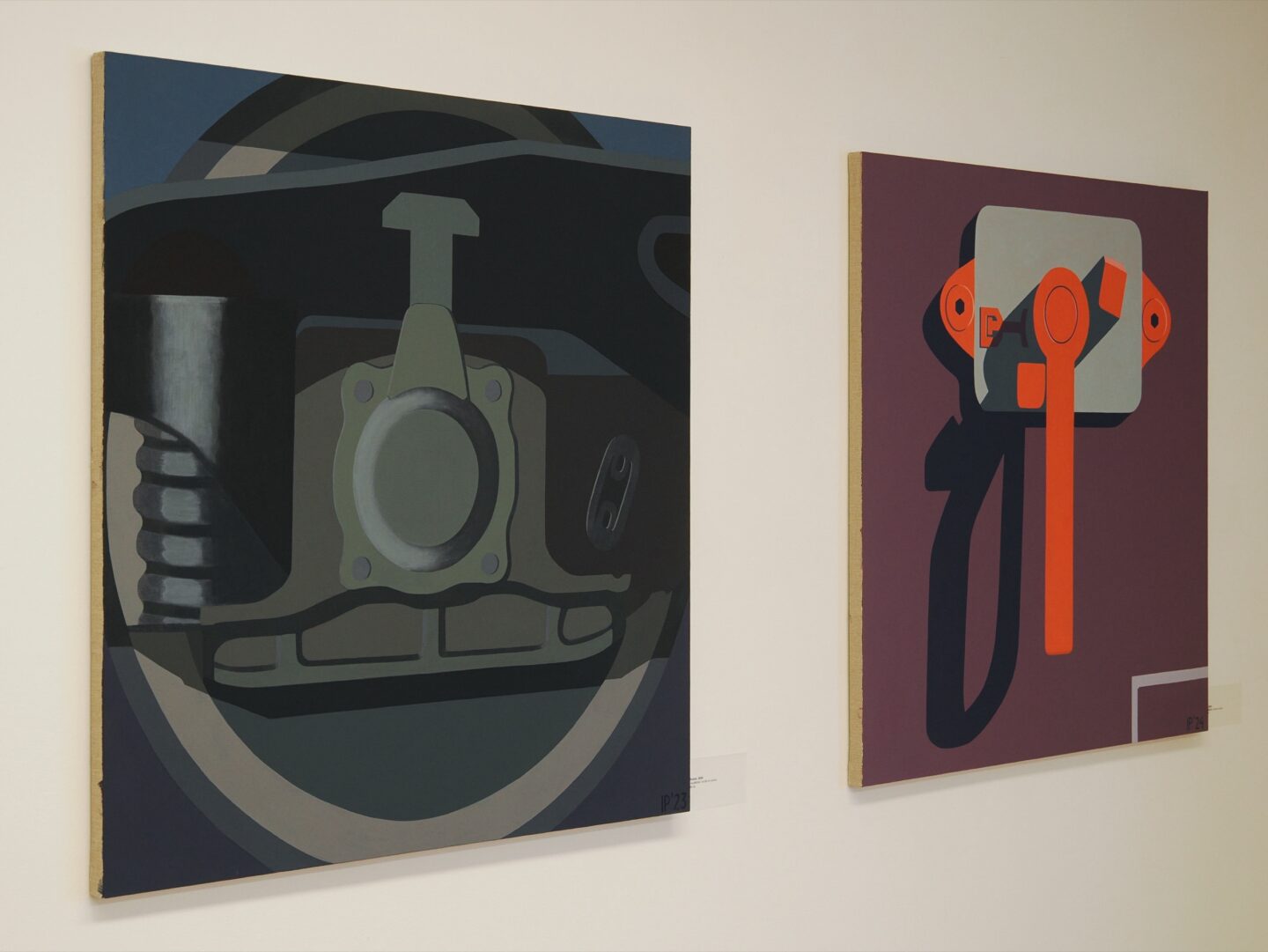 Ostatnio Igora Przybylskiego interesuje dokumentowanie pociągów kontenerowych w Europie. Z najnowszego cyklu Container Love pochodzi zainspirowany wyglądem fioletowego wagonu obraz Big red (2024). Artysta zaobserwował tu cień rzucany przez zawór, na płótnie utrzymany w tonie tytułowej cynobrowej czerwieni oraz rozbielonej szarości, która rozświetla zgaszony fiolet płaszczyzny malarskiej. Inspirowana fragmentem zawieszenia koła pociągu praca Mushroom (2024) została namalowana odmiennie, gdyż żywe, jasne barwy zastąpiły mroczne, szaro-czarne i granatowe tony, a obok płasko malowanych płaszczyzn pojawiły się też elementy urozmaicone dającym iluzję przestrzeni, światłocieniowym gradientem. Odsyłają nas one do języka kubistycznych, być może légerowskich płócien z metalowymi przedmiotami technicznymi: połyskującymi rurami, tulejami, śrubami, zwrotnicami i kołami. Zainspirowany fotografiami z okolic Magdeburga obraz Dangerous connection (2025) powstał zaś z połączenia różnych dziwnych elementów, które twórca oglądał na platformie służącej do przewożenia kontenerów.