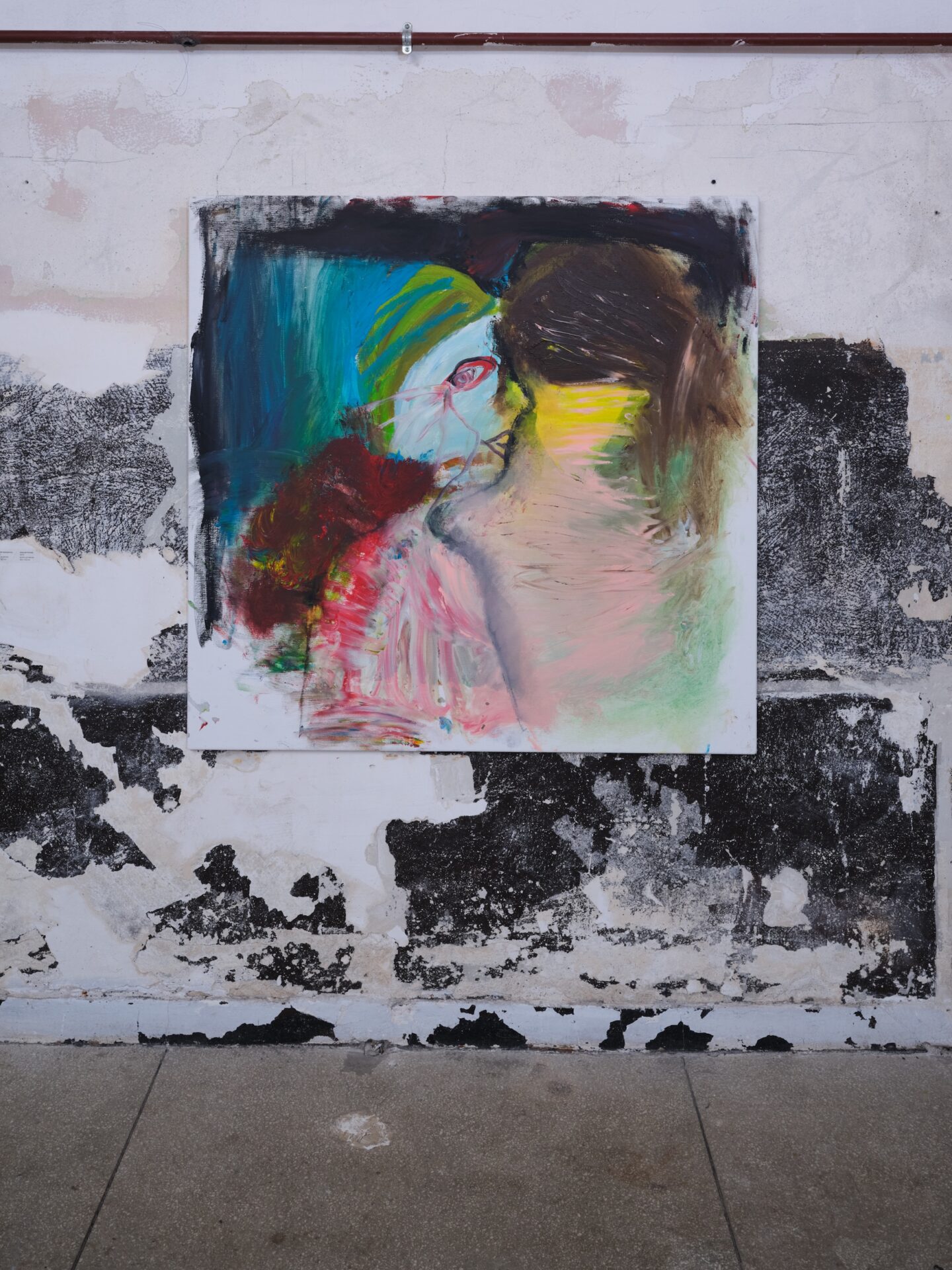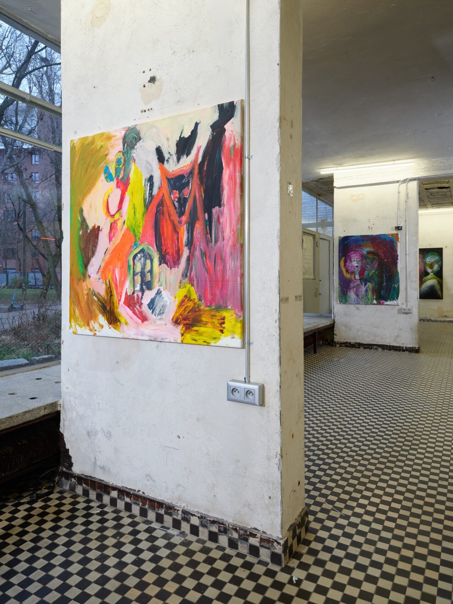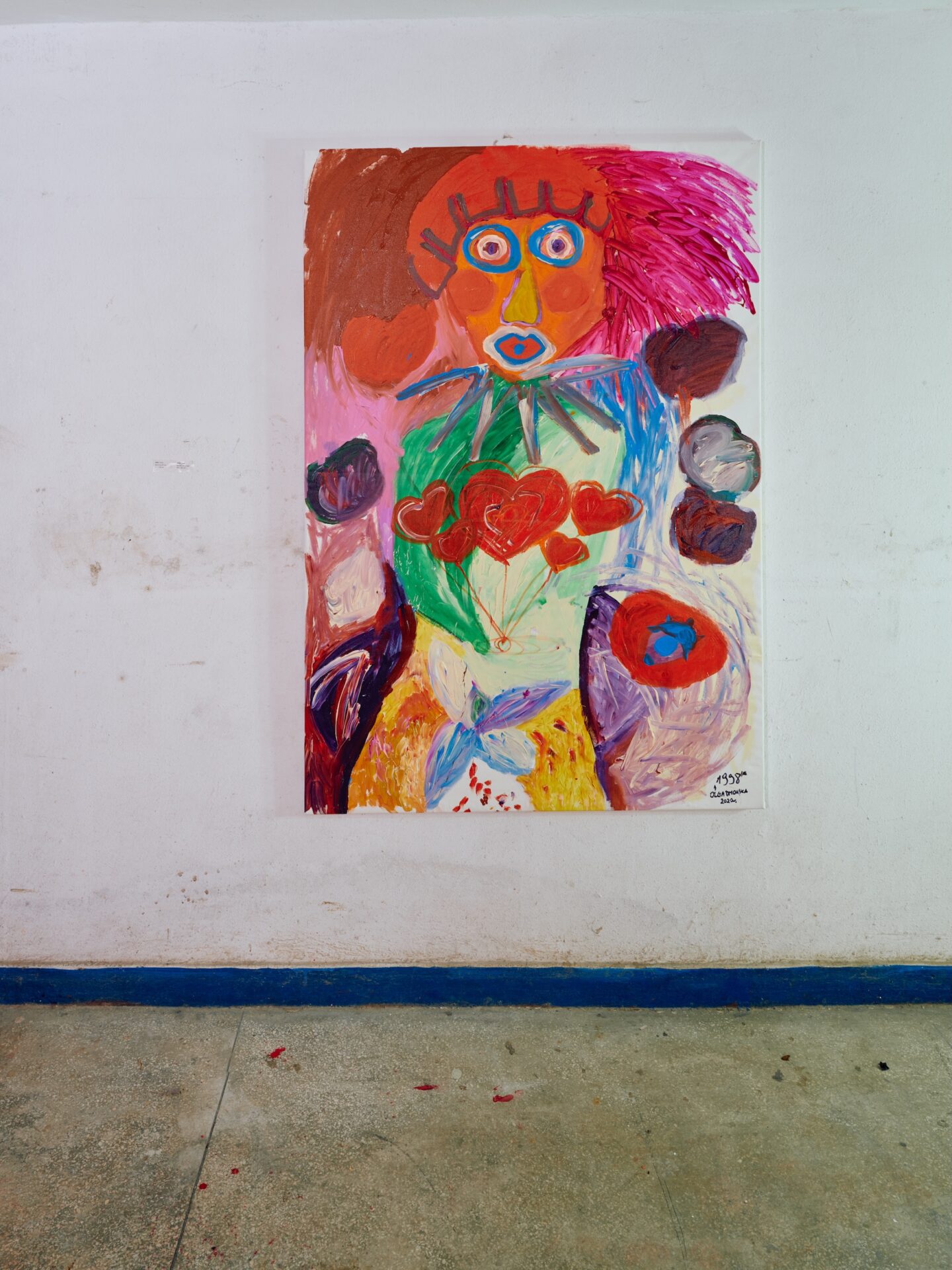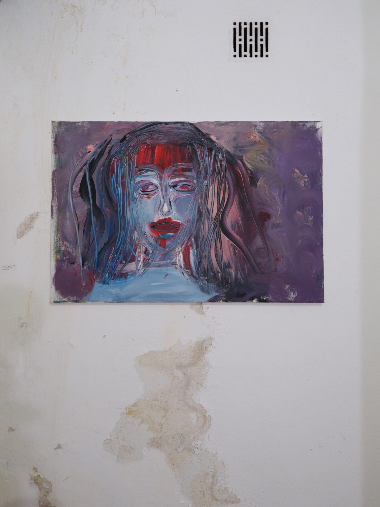 W początkowym okresie twórczości Dmowska wykorzystywała malarstwo jako przestrzeń przepracowywania doświadczeń z przeszłości, włącznie z trudnymi, traumatycznymi przeżyciami. Niektóre z tych prac przywołujemy na wystawie Przybliżyła się godzina i rozerwał się księżyc. Stanowią one swego rodzaju kontrapunkt dla obrazów z 2025 roku. Te najnowsze są wyrazem głębokiego wglądu w siebie i relacje ze światem, wyznaczając jednocześnie nowy rozdział jej malarskiej praktyki.