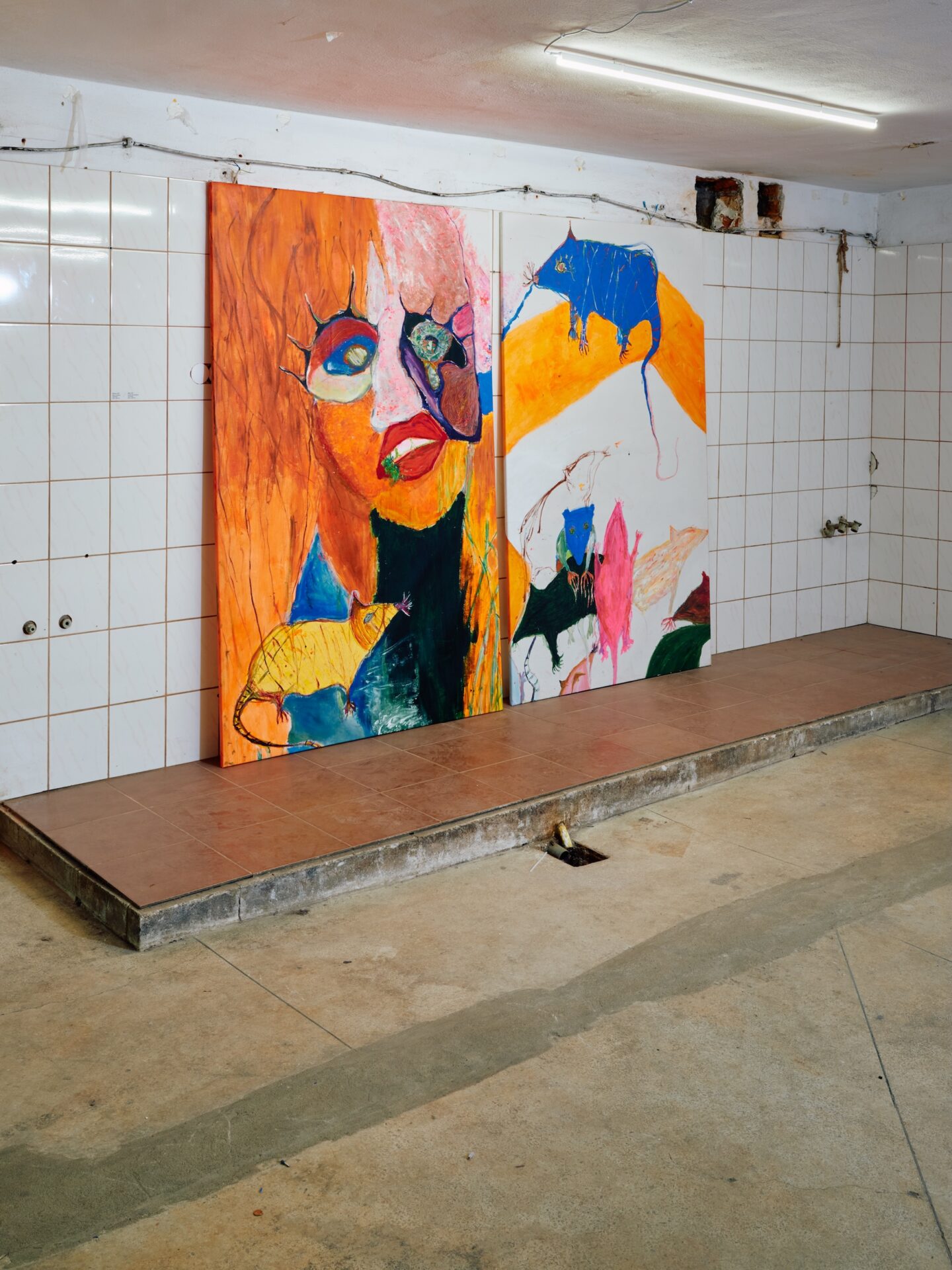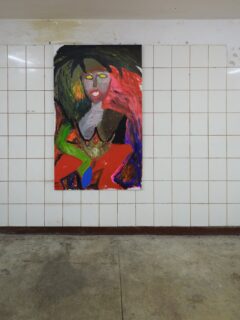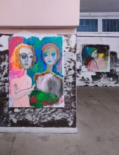 Na wystawie Przybliżyła się godzina i rozerwał się księżyc główną rolę grają nowe prace Olgi Dmowskiej – namalowane w 2025 roku obrazy, które sama artystka określa jako otwarcie nowego rozdziału w swojej twórczości.
