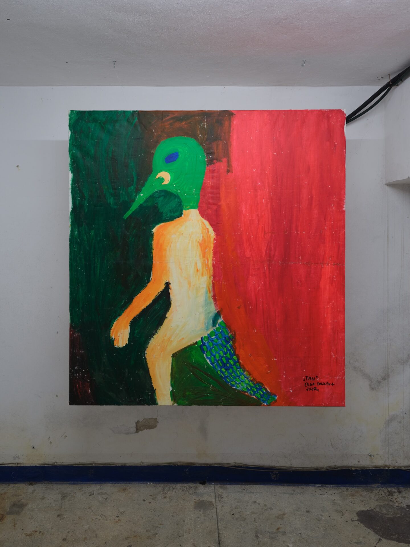 Kiedy pierwszy raz oglądałem prace Dmowskiej, pomyślałem o ekspersyjnym malarstwie Karla Appla i twórcach założonej przez niego po II wojnie światowej grupy CoBrA – artystach, którzy tworzyli ostentycjnie antyakademickie obrazy inspirowane twórczością dzieci, outsiderów, intuicją, emocją. Przez myśl przeszedł mi także Arnulf Rainer z jego zuchwałymi gestami, drapieżnością i gotowością do rzucania wyzwań malarskiej poprawności – i jeszcze bardziej Maria Lassnig z jej psychofizycznymi portretami i jadowitą kolorystyką. Niektóre obrazy Olgi Dmowskiej prowokują skojarzenia z Miriam Cahn. Istnieje pokusa, aby podążać śladem rezonansów i analogii prac Dmowskiej z twórczością innych artystów i artystek, ale te tropy niekoniecznie prowadzą do głębszego zrozumienia jej malarstwa. Wręcz przeciwnie – odwracają raczej uwagę od jej obrazów. Malarstwo Dmowskiej nie wyrasta z tradycji. Na Akademii artystka praktykowała tę dyscyplinę tak, jakby chciała wymyślić ją od nowa, na własny użytek i potrzeby. Siła jej obrazów ma inne korzenie niż formalistyczne kalkulacje czy stylistyczne wybory. Praktyka Dmowskiej oparta jest na niezapośredniczonej przez malarskie konwencje transmisji życia wewnętrznego na powierzchnię płótna. Artystka nie maluje z natury, nie wspomaga się w procesie tworzenia fotografiami, nie poprzedza pracy szkicami. W jej malarstwie zapisane jest głębokie zainteresowanie ludzką psychiką, badania nad naturą jaźni i świadomości, historia jej duchowych poszukiwań – prowadzonych szeroko, od filozofii i psychoanalizy po ezoterykę.
