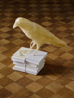 Zuzanna Janin, „Biała Kruk z pępowiną (książki)”, 2015, żywica epoksydowa, papier, fot. Bartosz Górka