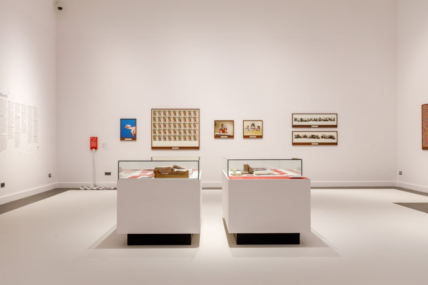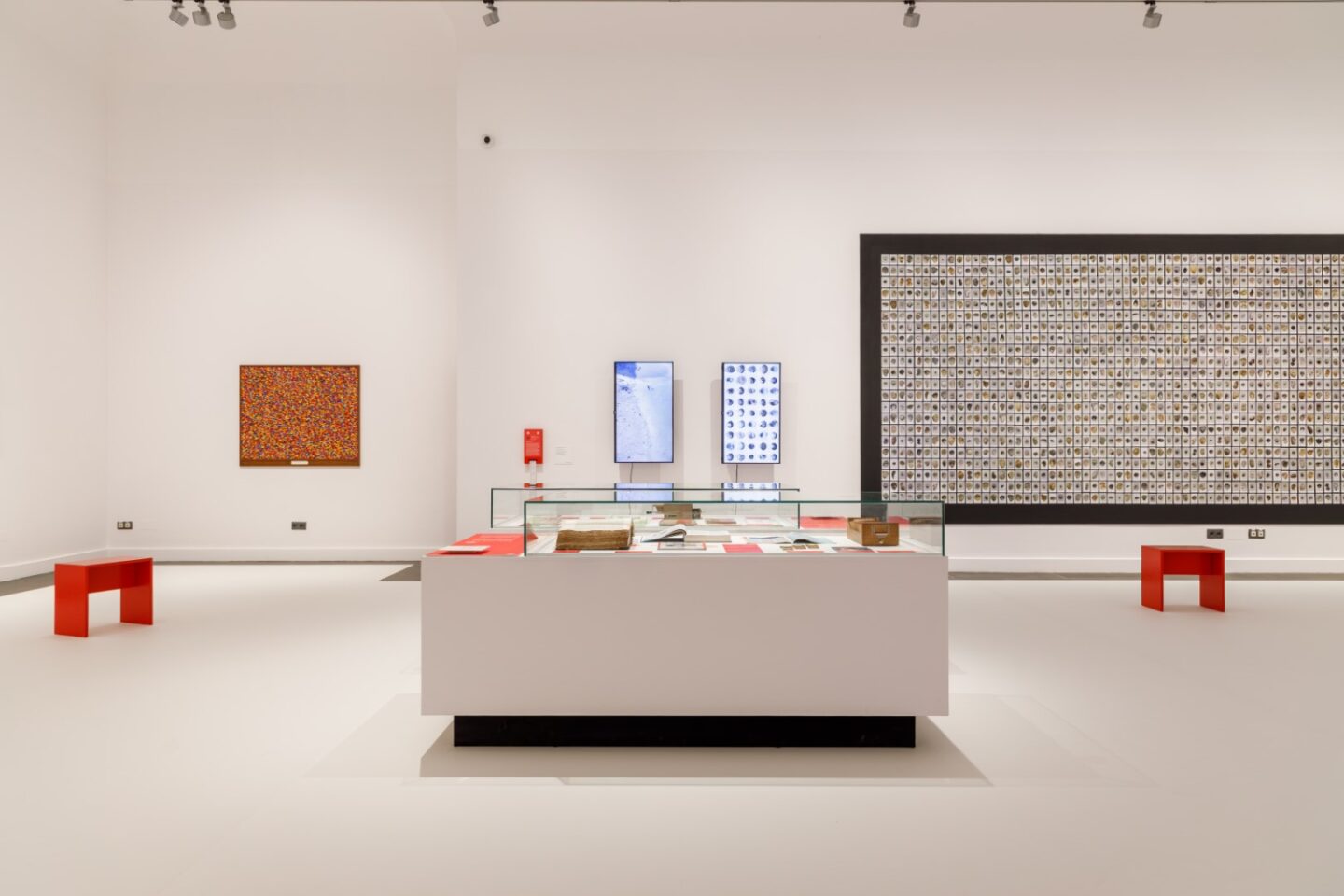 Ta silna podbudowa intelektualna (a momentami nawet akademicki charakter) i interdyscyplinarny wymiar AI – algorytmów iluzji przekładają się również na organizację ekspozycji. Zorientowano ją wokół klarownie zarysowanych motywów, które wydobywają zamysł kuratorski i nadają przejrzystość całej masie przeróżnych obiektów zebranych na wystawie. Motywów tych jest osiem, ale chyba najmocniej wybrzmiewają wiedza, wyobrażenia, władza i herstorie. Przy czym, chociaż teoretycznie wszystkie przekładają się na rozmieszczenie i zgrupowanie prac, co szczególnie widać w pierwszej sali, to jednak w praktyce funkcjonują jako luźno naszkicowana mapa. Przenikają się wzajemnie w wielu realizacjach i ich opisach, tworząc siatkę powiązań i skojarzeń.